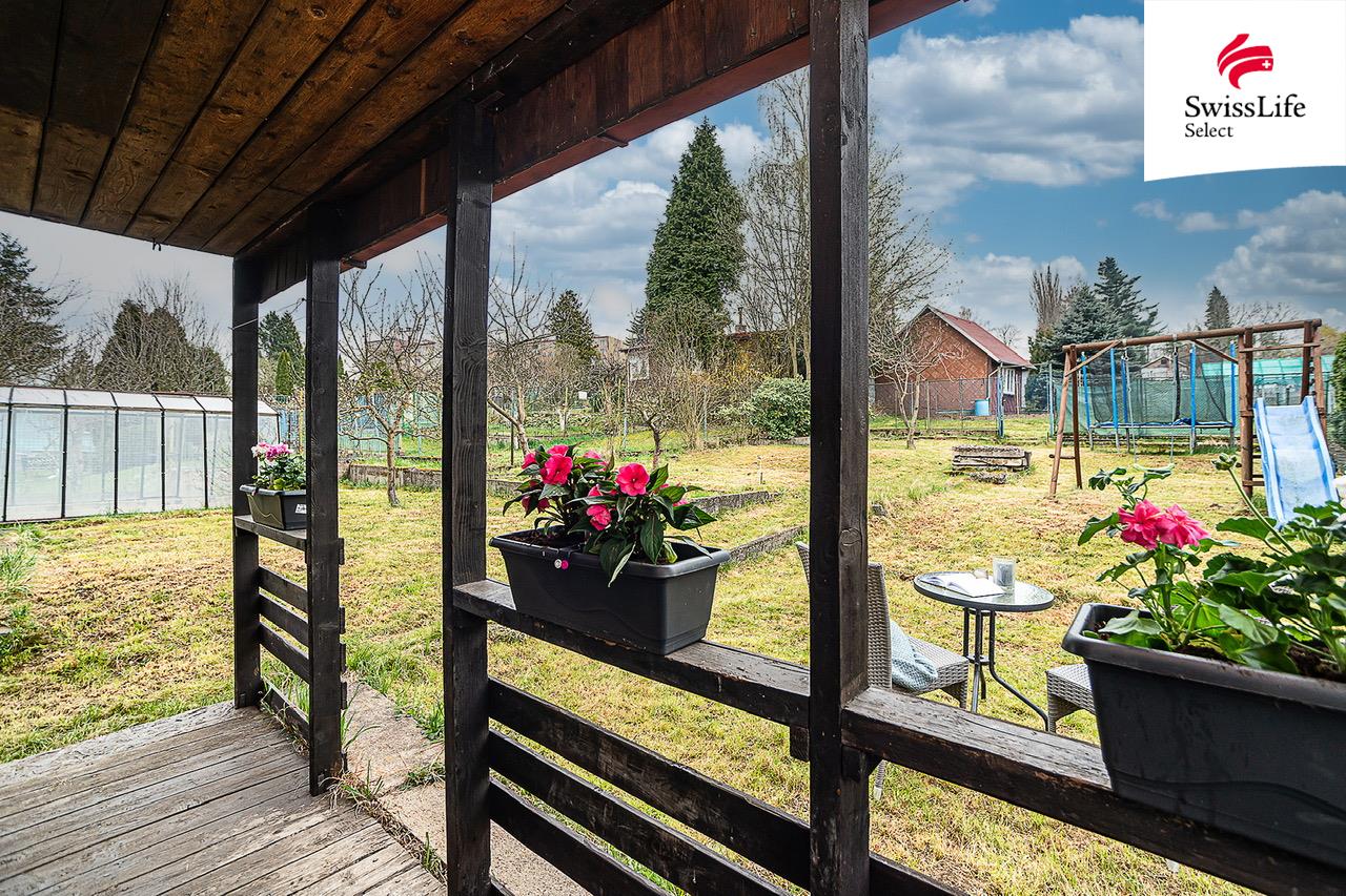Najdete tu rovinatý pozemek se záhony, skleník, kompostér, suché WC a sezónní vodu. Elektřina zde není, ale díky tomu, že zde slunce svítí po celý den, nabízí se možnost řešit energii vlastní fotovoltaikou a vytvořit si tak soběstačné zázemí. Klid a soukromí jsou samozřejmostí. Do centra dojdete pěšky za cca 15 minut, MHD je