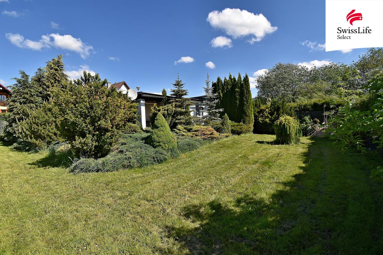Vzrostlá zahrada obklopující nemovitost, která poskytuje dostatek zeleně a soukromí. Ideální pro relaxaci nebo zahradničení.