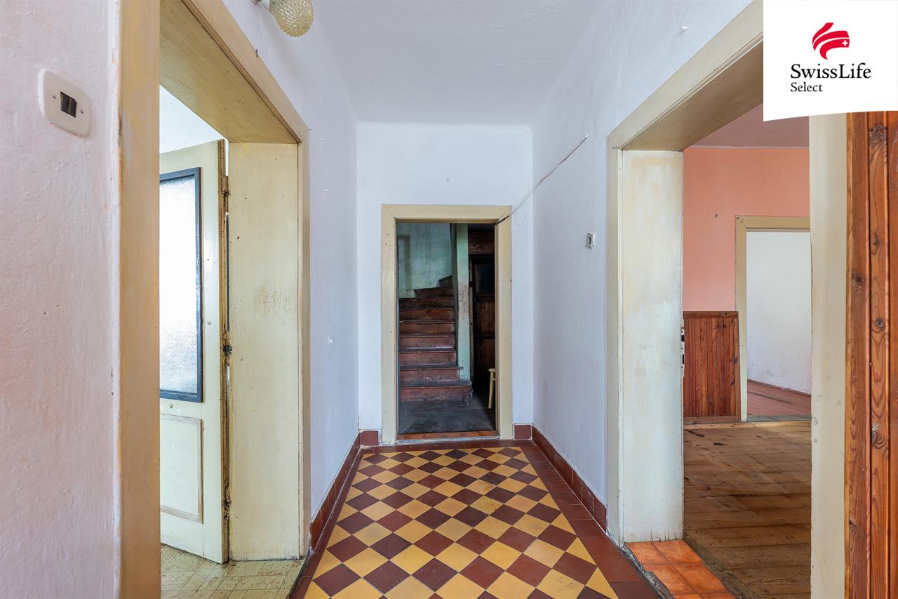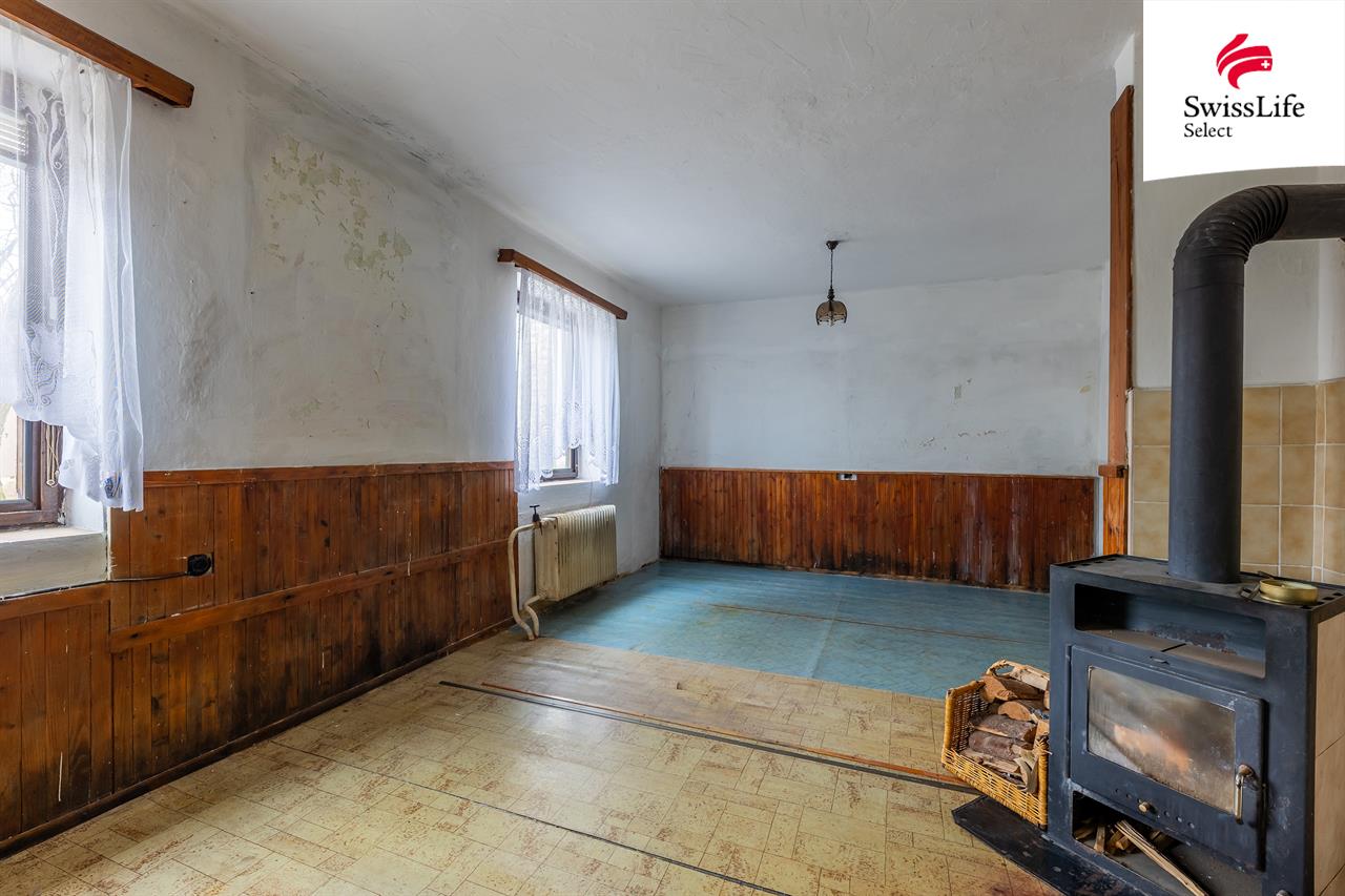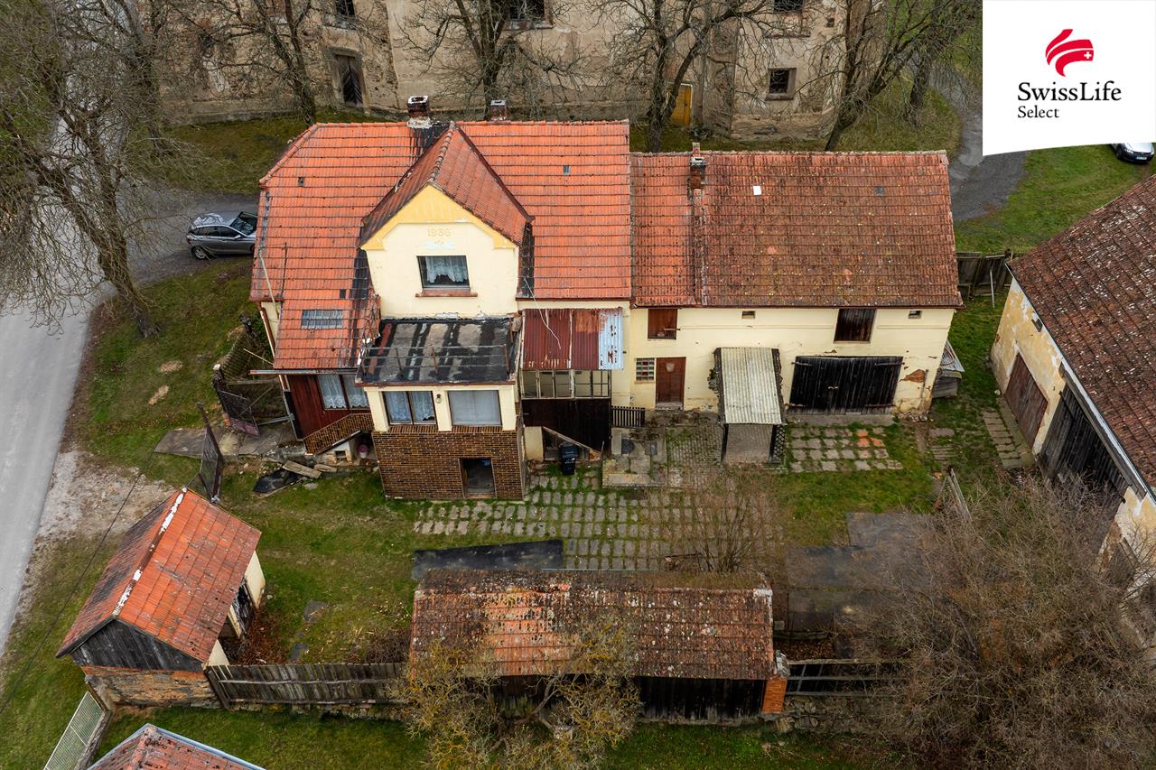 Samotný dům je v původním stavu a je určen ke kompletní rekonstrukci. Zároveň ale stojí na solidních základech – je podsklepený, suchý a krov je ve stavu, který umožňuje další využití, například půdní vestavbu.