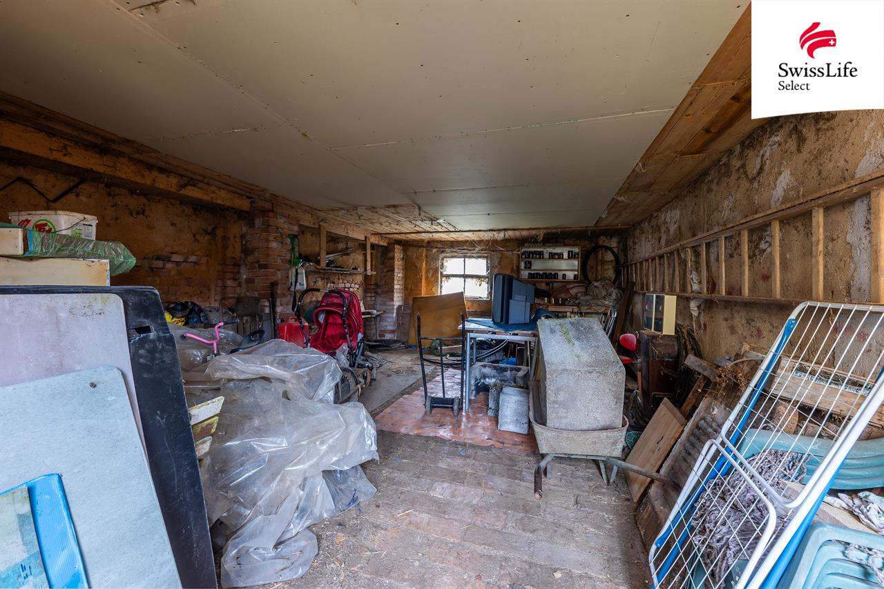 Uzavřený dvůr vytváří přirozené soukromí. Na něj navazuje rozsáhlé hospodářské zázemí – stodola, dílny i garáže, které otevírají prostor pro podnikání, řemeslo, skladování nebo vlastní projekty. Právě to je hodnota, kterou dnes podobné nemovitosti často postrádají.