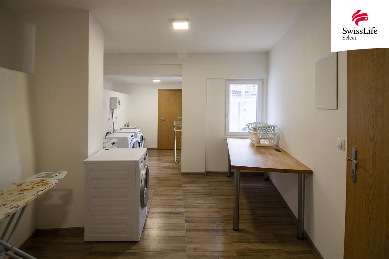 Součástí domu je i menší zahrada a společná místnost s možností vyprání a sušení prádla.