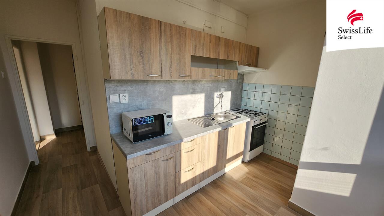 Byt 2+1 o příjemné dispozici nabízí dva samostatné pokoje a kuchyň přístupnou z chodby, což zajišťuje pohodlné a praktické bydlení.