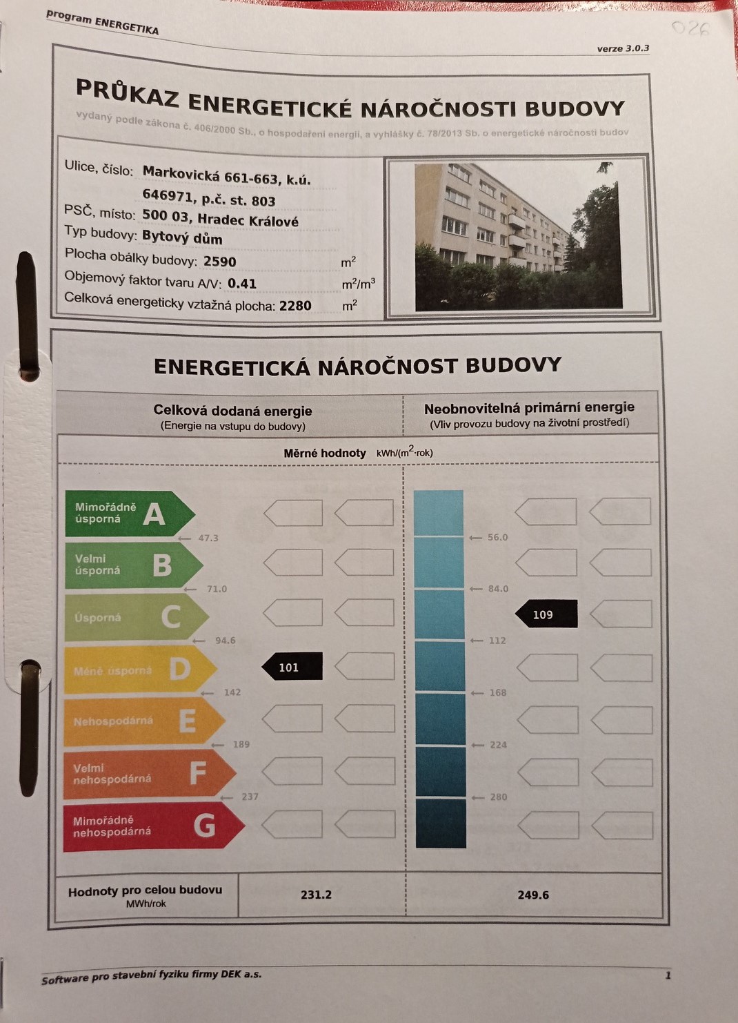 | Třída energetické náročnosti budovy | D - méně úsporná |