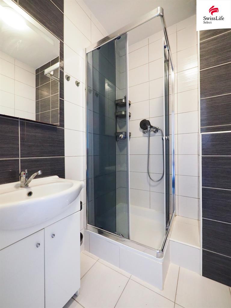 Nabízíme k dlouhodobému pronájmu byt v osobním vlastnictví o dispozici 2+KK situovaný ve 4. nadzemním podlaží bytového domu (s výtahem). Podlahová plocha bytové jednotky bez příslušenství je 45,75 m2. Příslušenstvím bytu je sklepní kóje umístěná v 1. podlaží domu o výměře 2 m2 a dále privátní parkovací stání před budovou. Dispoziční řešení bytu: předsíň (2,89 m2), kuchyně (16,91 m2), pokoj (23,29 m2), koupelna + WC (2,66 m2). Byt je po komplexní rekonstrukci: PVC okna, nové rozvodové sítě, topný systém, štukové omítky, kuchyňská linka, podlahová krytina (keramická dlažba), interiérové dveře, vstupní bezpečnostní dveře, sanitární vybavení/keramické obklady. Ústřední dálkové vytápění a ohřev teplé vody s centrálním zdrojem horkovodem. Výhodná poloha nemovitosti v centrální části městské zástavby s optimální dostupností služeb.