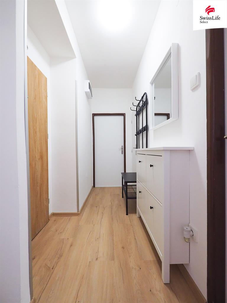 Nabízíme k dlouhodobému pronájmu byt v osobním vlastnictví o dispozici 2+KK (se zasklenou lodžií) situovaný v 7. nadzemním podlaží osmipodlažního zděného domu (s eurovýtahem). Díky jihozápadní orientaci oken směrem do klidného vnitrobloku se jedná o tichý a slunný byt. Celková podlahová plocha bytové jednotky včetně příslušenství je 57 m2. Příslušenstvím bytu je sklep umístěný v 1. nadzemním podlaží domu. Dispoziční řešení bytu: předsíň, kuchyňský kout, obývací pokoj, ložnice, koupelna a samostatné WC, komora. Byt je po výrazné modernizaci zahrnující rekonstrukci bytového jádra (nové rozvodové sítě, kuchyňská linka včetně elektrospotřebičů, nové sanitární vybavení/keramické obklady/dlažba, nová podlahová krytina v kuchyni - lino), elektrorozvody v celém bytě, částečně nové štukové omítky, interiérové dveře, osvětlení. Bytový dům prošel komplexní revitalizací: rekonstrukce střechy, výměna oken a vstupních portálů, zateplení obvodového pláště budovy (kontaktní zateplovací systém se strukturální omítkou), přístavba lodžií, výměna domovních rozvodů. Ústřední dálkové vytápění a ohřev teplé vody s centrálním zdrojem horkovodem. Poloha domu v centrální části městské zástavby s optimální dostupností služeb (MŠ, ZŠ, gymnázium, SPŠ, dětské hřiště, relaxační centrum, síť obchodů a služeb, MHD).