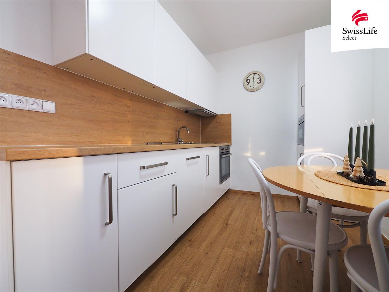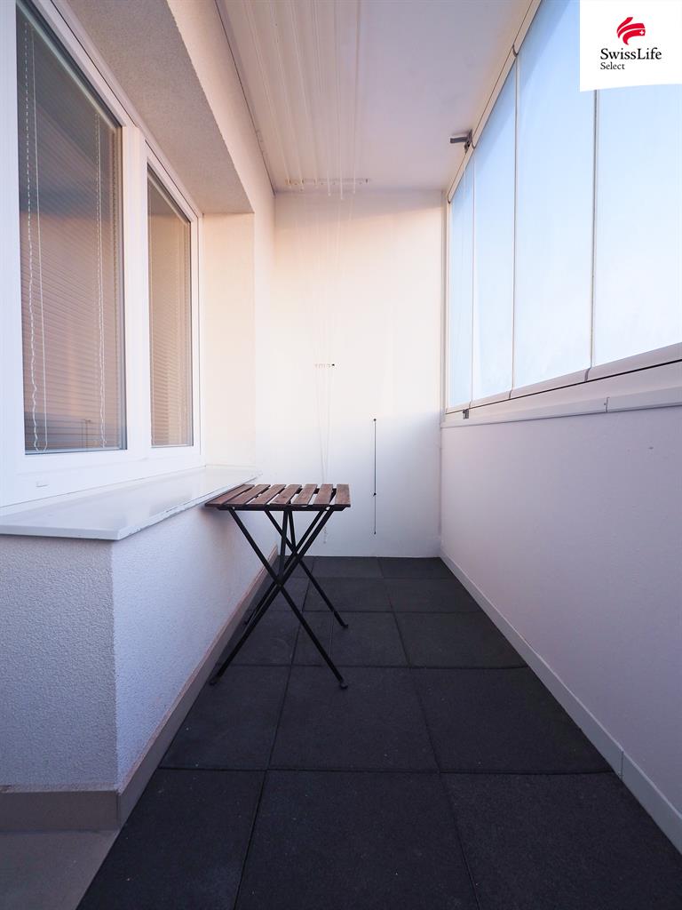 Nabízíme k dlouhodobému pronájmu byt v osobním vlastnictví o dispozici 2+KK (se zasklenou lodžií) situovaný v 7. nadzemním podlaží osmipodlažního zděného domu (s eurovýtahem). Díky jihozápadní orientaci oken směrem do klidného vnitrobloku se jedná o tichý a slunný byt. Celková podlahová plocha bytové jednotky včetně příslušenství je 57 m2. Příslušenstvím bytu je sklep umístěný v 1. nadzemním podlaží domu. Dispoziční řešení bytu: předsíň, kuchyňský kout, obývací pokoj, ložnice, koupelna a samostatné WC, komora. Byt je po výrazné modernizaci zahrnující rekonstrukci bytového jádra (nové rozvodové sítě, kuchyňská linka včetně elektrospotřebičů, nové sanitární vybavení/keramické obklady/dlažba, nová podlahová krytina v kuchyni - lino), elektrorozvody v celém bytě, částečně nové štukové omítky, interiérové dveře, osvětlení. Bytový dům prošel komplexní revitalizací: rekonstrukce střechy, výměna oken a vstupních portálů, zateplení obvodového pláště budovy (kontaktní zateplovací systém se strukturální omítkou), přístavba lodžií, výměna domovních rozvodů. Ústřední dálkové vytápění a ohřev teplé vody s centrálním zdrojem horkovodem. Poloha domu v centrální části městské zástavby s optimální dostupností služeb (MŠ, ZŠ, gymnázium, SPŠ, dětské hřiště, relaxační centrum, síť obchodů a služeb, MHD).