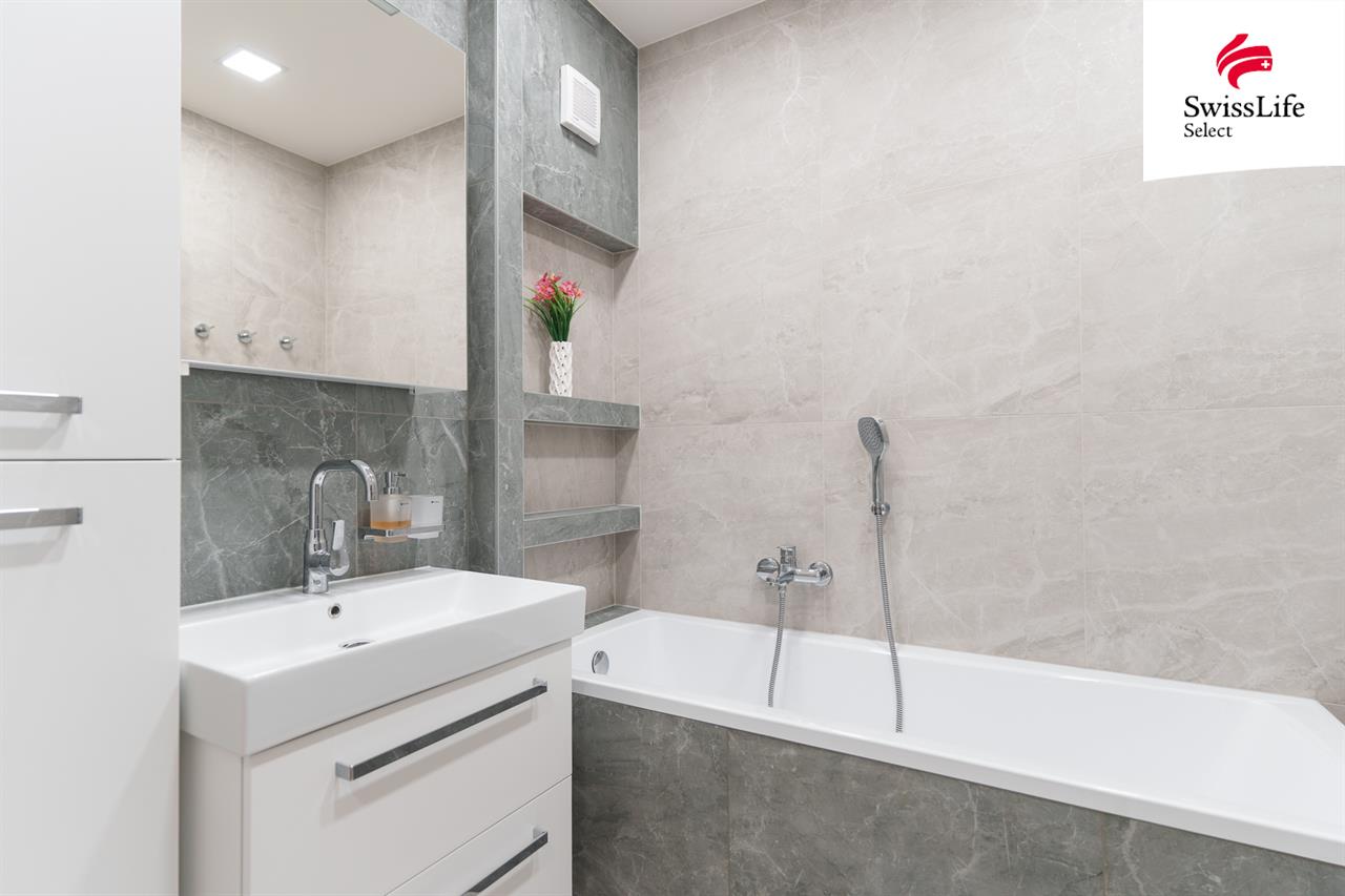 Byt prošel kompletní zdařilou rekonstrukcí včetně nové kuchyňské linky, nových rozvodů a nových podlah v celém bytě. Koupelna i WC jsou obložené moderními obklady a mají praktické zásuvné dveře. V bytě jsou plastová okna a nové interiérové dveře. V obýváku a kuchyni jsou zvenku nainstalované elektricky ovládané předokenní rolety. Vstup do bytu chrání bezpečnostní dveře NEXT. Na chodbě je vestavěná skříň, která maximálně využívá prostor k uložení věcí.