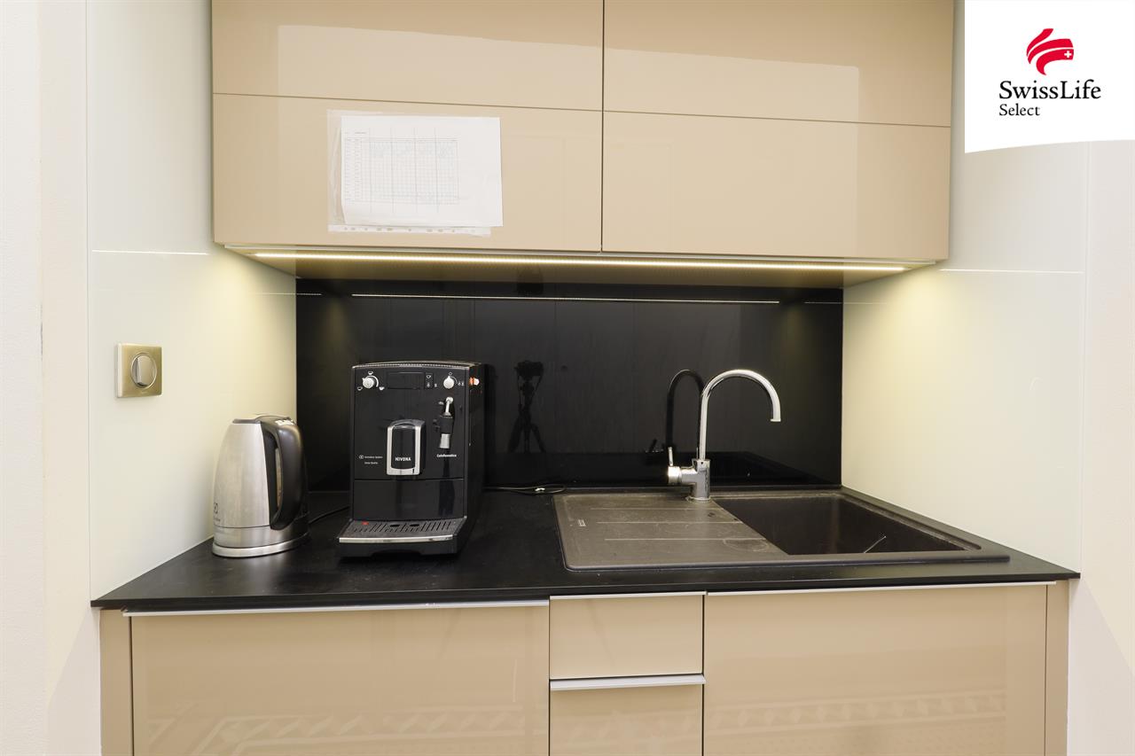 Tento vzácný objekt nyní disponuje jednou volnou kanceláří o výměře 15 m2 plus plochy připadající na sociální zařízení, kuchyňky a společné prostory. Dům je členěn do jednotlivých samostatně pronajímatelných částí, kdy každá nabízí uživatelům komfortní sociální zařízení a čajovou kuchyňku. Jednotlivé části mají samostatné měření energií. Objekt nabízí reprezentativní prostory.