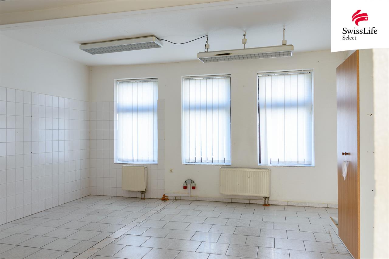 V zadní části se nachází zázemí s kuchyní, pokojem a toaletami – ideální základ pro vybudování komfortního bytu.