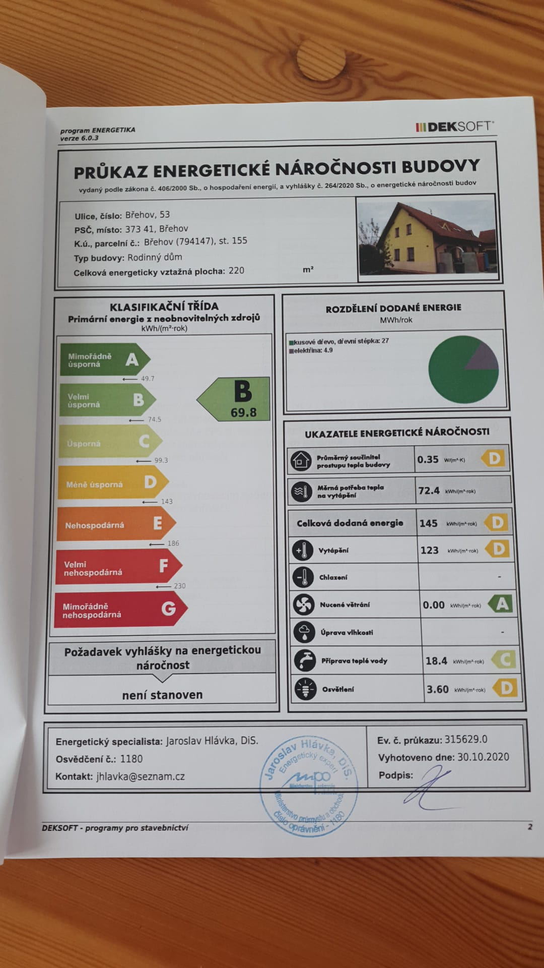 | Třída energetické náročnosti budovy | B - velmi úsporná |