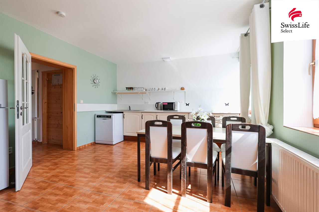 Pronájem včetně všeho zařízení, nábytku a spotřebičů. Volný, maximálně pro 8 osob. Parkovací stání je pro 3 auta je v ceně nájmu.