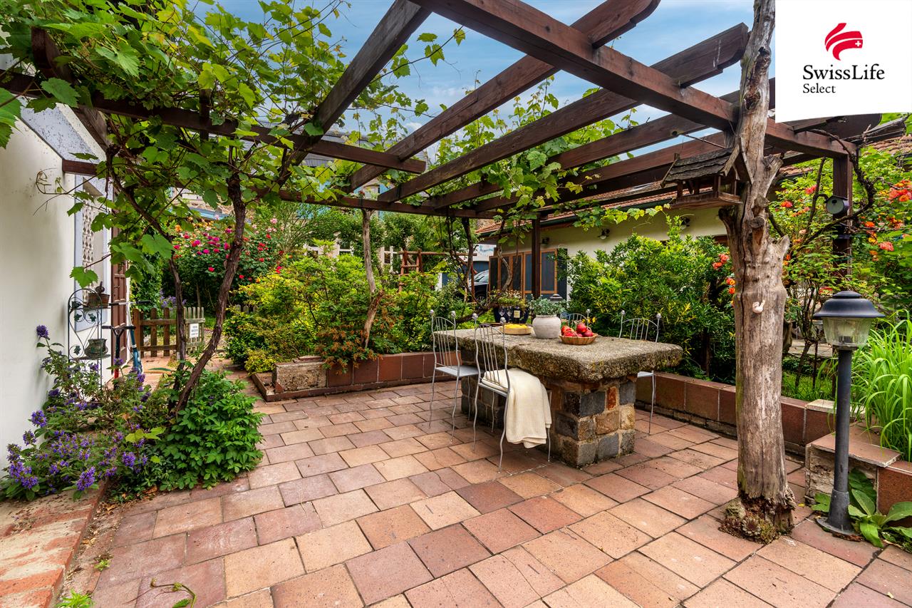 Pronajímaná část domu (byt č. 1) o ploše 364 m² zahrnuje v přízemí kuchyň, jídelnu s kachlovými kamny a obývací pokoj s krbem, dále pak samostatnou toaletu, koupelnu a šatnu. V 1. patře 4 samostatné pokoje/ložnice s koupelnou a samostatnou toaletou a v 2. patře pak podkrovní pokoj s umyvadlem a toaletou. Dům je částečně vybaven. K užívání je též venkovní terasa s kamenným stolem, pergolou a jezírkem, sklepení s možností zřízení stylového vinného sklípku (vstup z kuchyně i zahrady) a tři parkovací stání (2 krytá, 1 venkovní). Cena pronájmu je 70 000 Kč + 25.000 Kč zálohy na služby (el. energie, plyn, voda, odpad, vytápění, ostraha). Nájemce si hradí běžnou údržbu, větší opravy zajišťuje pronajímatel.